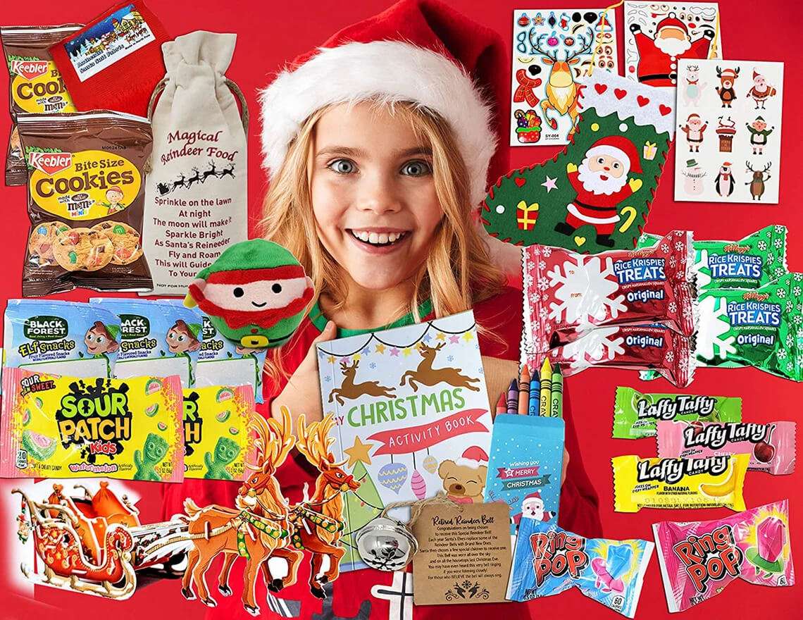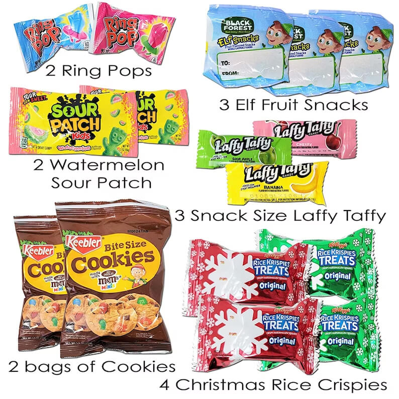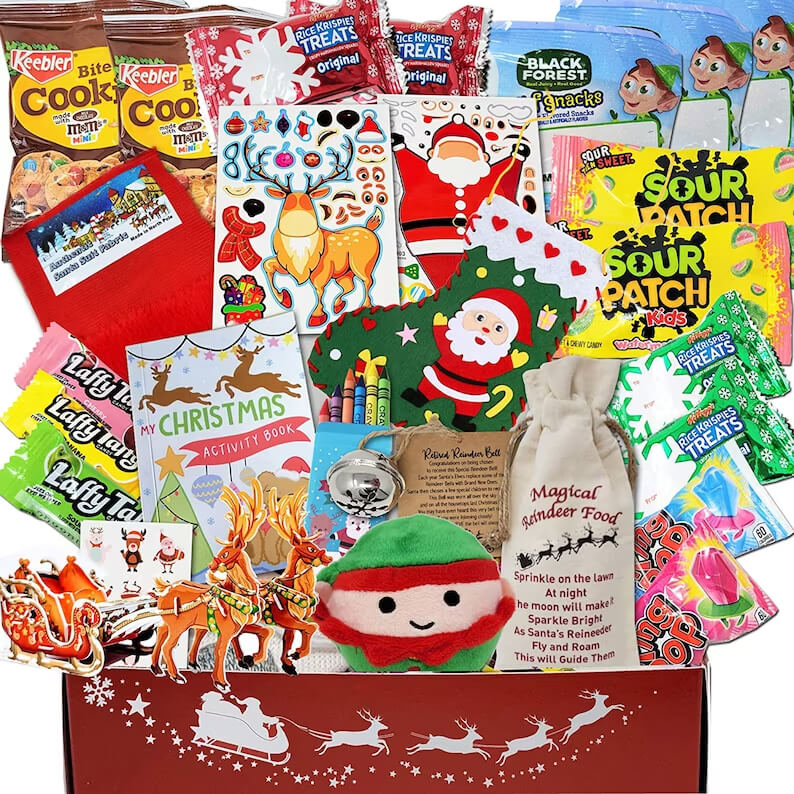 This Christmas Care Package with Christmas Activities and Snacks is the perfect gift for your child, teenager, college student, missionary, grandchild, god child, niece, nephew, friend, girl, boy. It contains, 3 elf fruit snacks, 4 Christmas Rice Crispy Treats, 2 Ring Pops, 3 Laffy Taffys, 2 bags of Bite Size Cookies. This Christmas gifts pack is great for bringing the Christmas Spirit. Our kids Christmas gifts are perfect for cheering someone up. Giving something fun for kids to do while they are stuck at home. This toddler Christmas gifts pack has many activities to keep them busy, creative and happy. A great way to send your love to someone even when you can't be together. It brings the magic of Christmas. Kids are SO excited to receive this kids Christmas care package.
