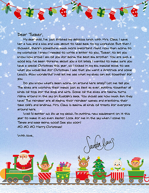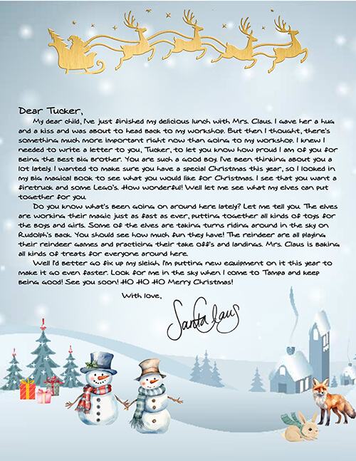 "All the letters arrived and the children were ecstatic. My niece especially, who was questioning His existence, is now fully convinced that he is real and watching. The letters were beautifully written and mailed. All the kids were blown away. You do great work."